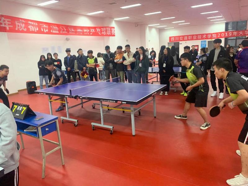 11月19日,四川交职院2019年大学生乒乓球比赛在弘毅馆收官。来自全院10个系,共80名运动员和30余名裁判员、工作人员参加了本次比赛。 比赛以系为单位进行团体赛,分两个阶段进行,10个系抽签进入A、B两组打循环...