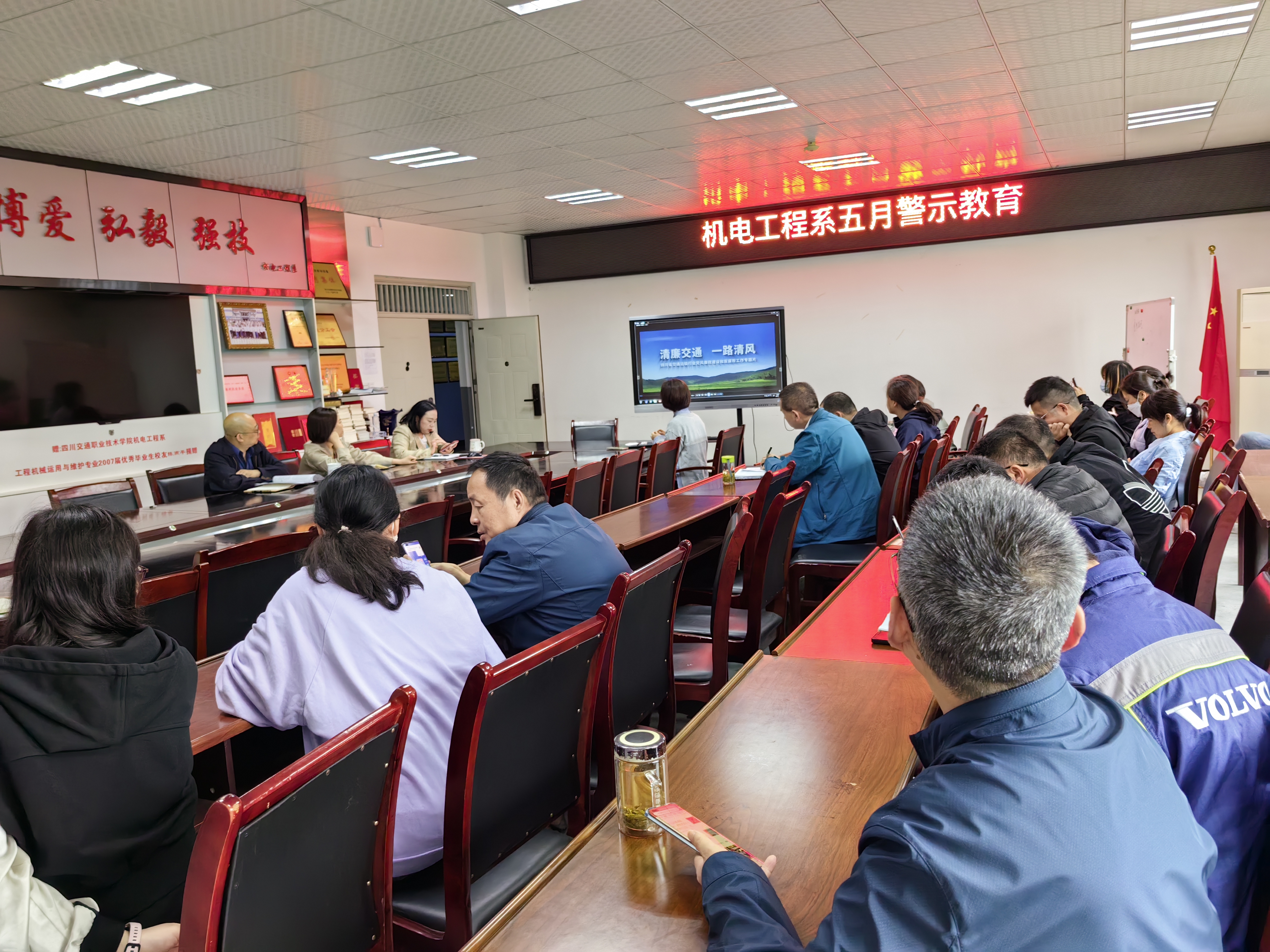 5月9日下午,机电工程系全体教职工在践行楼B302会议室开展了五月警示教育工作会会议集中观看了全省交通运输行业“清廉交通”建设工作专题片《清廉交通 一路清风》,警示全体教职工在本职工作中不忘初心、砥砺前行...