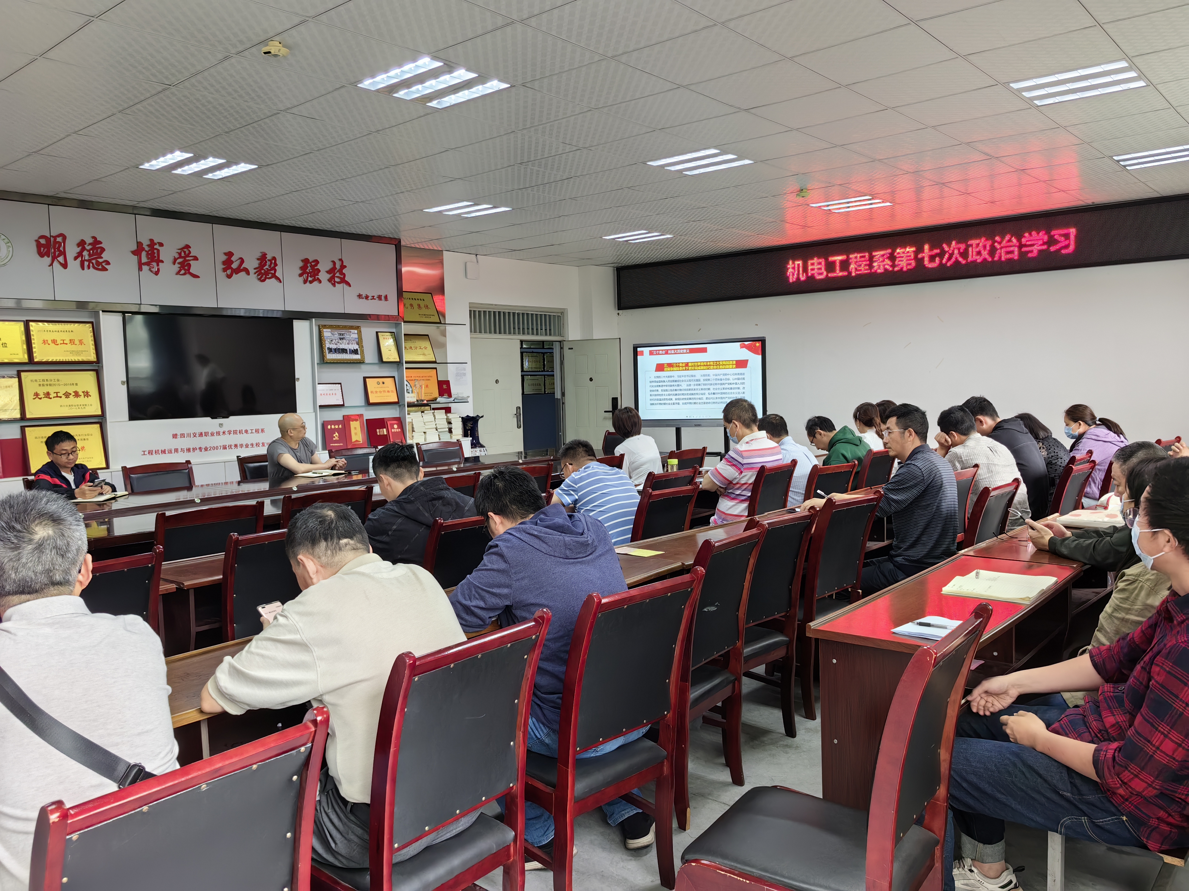 5月23日下午,机电工程系党总支在践行楼B302会议室组织全体教职工展开本年度第六次集中政治理论学习,会议由系党总支书记胡其良同志主持,全体教职工参加了学习。在教师党支部书记的带领下,全体教职工认真学习了...