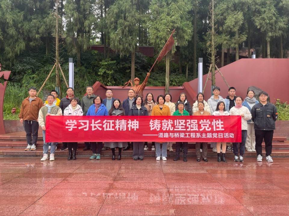 为用好党的红色资源,增强主题教育学习实效,近日,道路与桥梁工程系党总支组织全体党员师生,前往邛崃长征纪念馆开展“学习长征精神,铸就坚强党性”党日活动。全体党员同志们向革命烈士纪念碑敬献花篮,在鲜红...