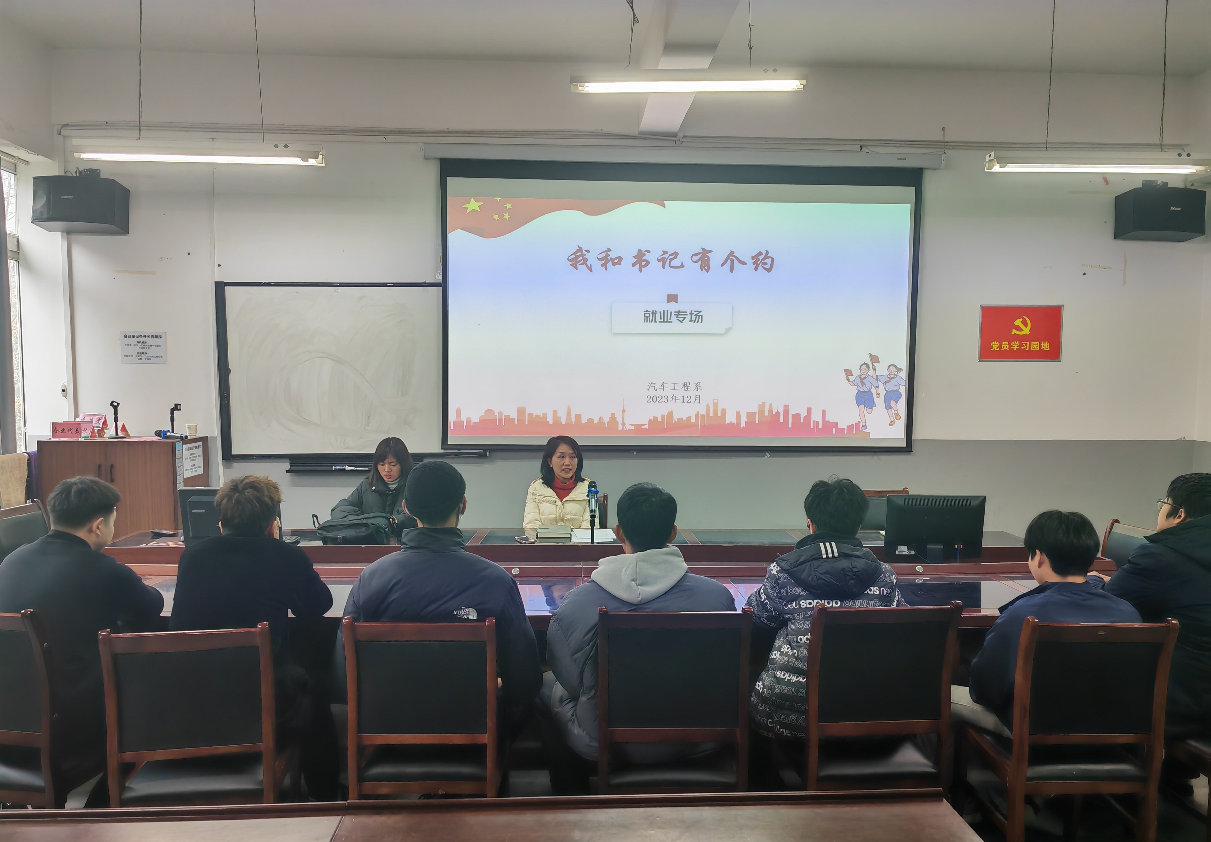 为切实做好我系2024届毕业生就业工作,帮助毕业生充分了解就业形势、转变就业观念,掌握就业技巧、提升就业能力和竞争力。汽车工程系于12月27日在践行楼A316开展“我和书记有个约”活动。活动以就业为主题进行,...