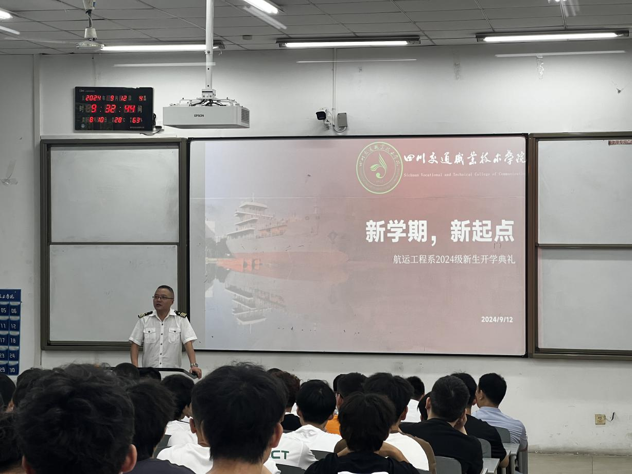 9月12日上午,航运工程系2024级新生开学典礼在劝学楼1115举行。系班子成员、教研室主任、新生辅导员、培训中心干事、教学干事、学生干事、教工及学生党支部书记、教师代表以及2024级全体新生共同参加,典礼由系党...