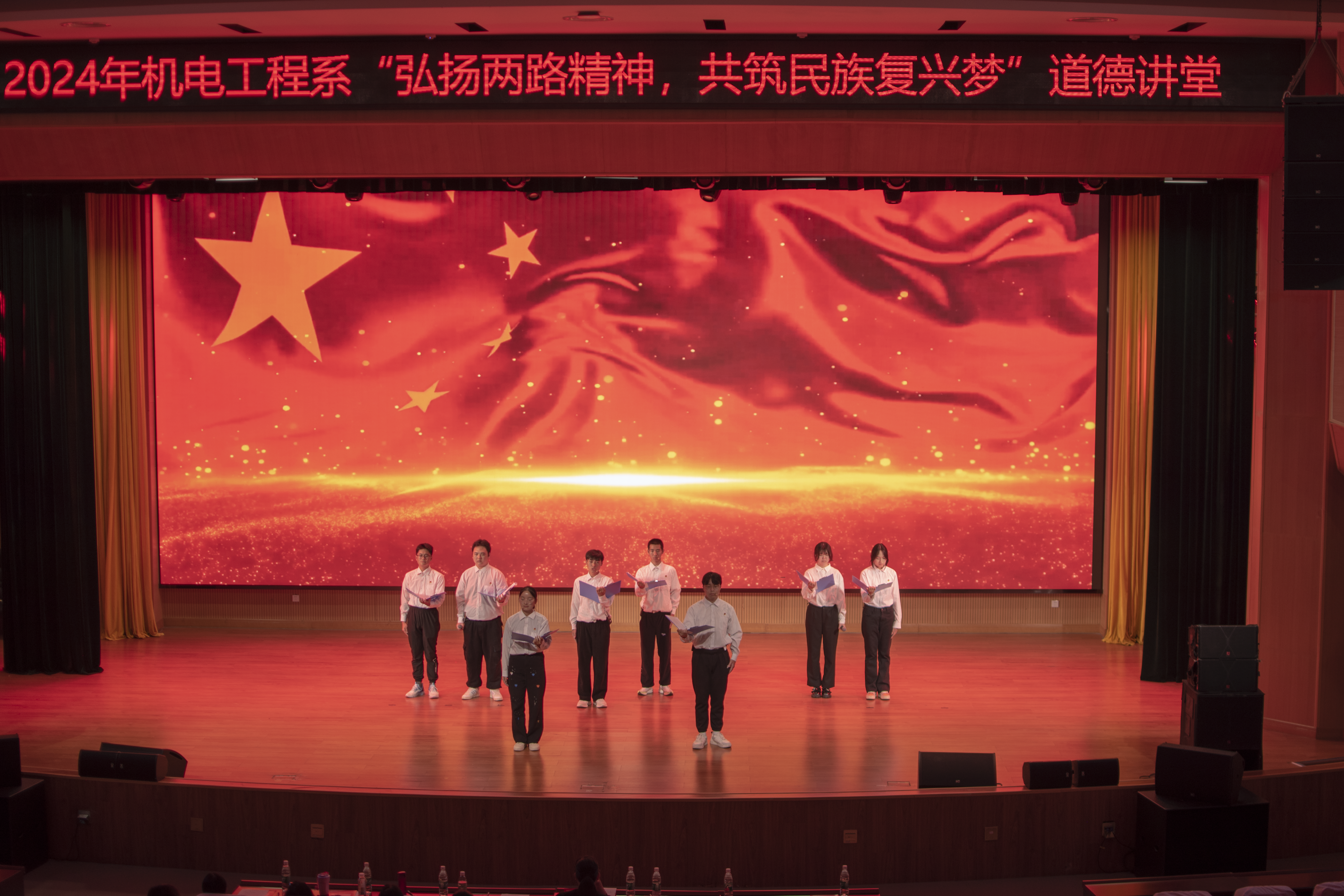 10月15日下午16:00,机电工程系“弘扬‘两路’精神,共筑民族复兴梦”道德讲堂在厚学楼报告厅顺利举行,全院400余名师生参与。活动以一首饱含深情的《我和我的祖国》开场,同学们手举国旗,大声的跟唱,用真挚的...
