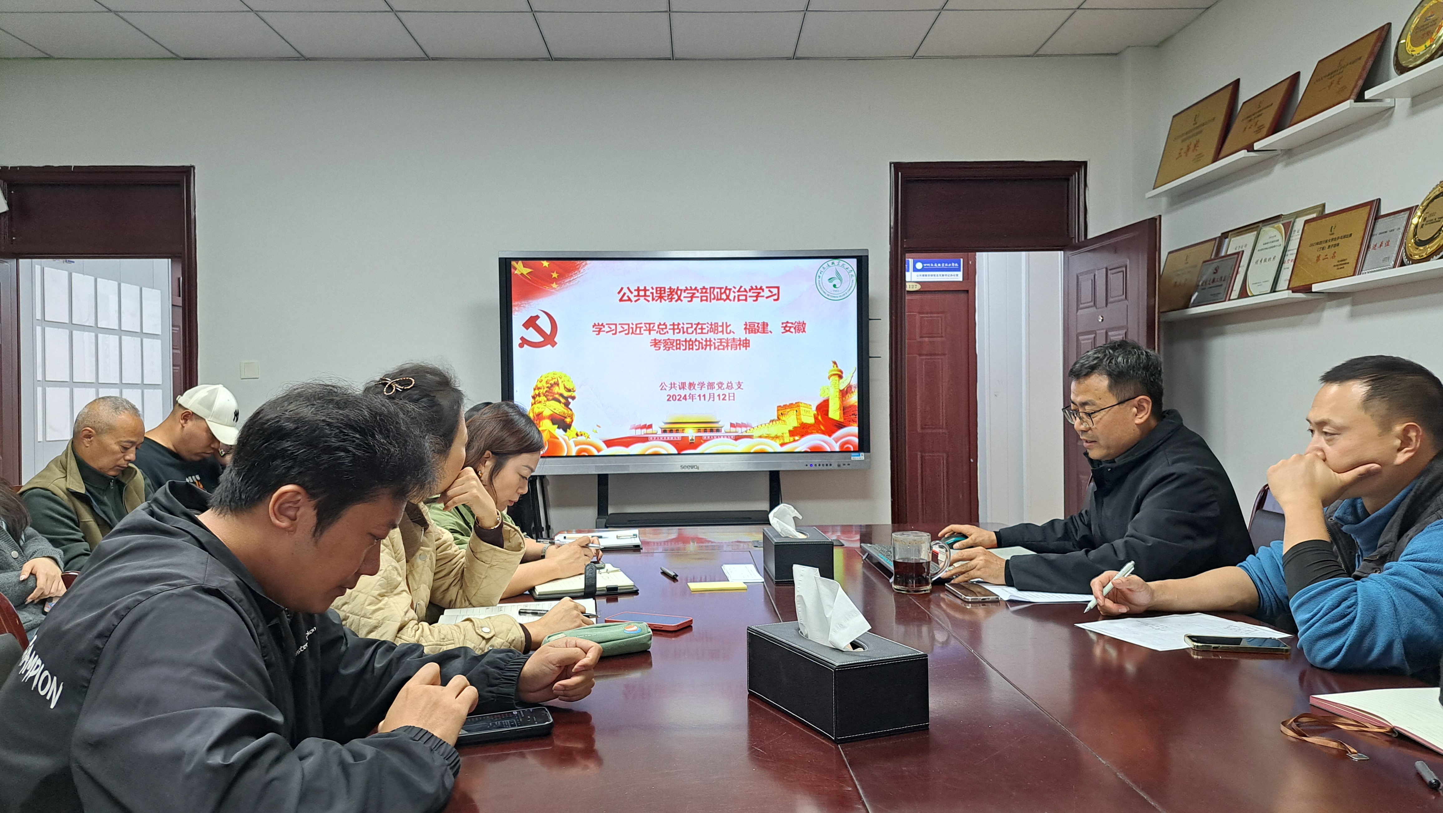 11月12日下午,公共课教学部召开政治学习会,会议由公共课教学部党总支书记陈清同志主持,部门全体教职工参加了会议。会议传达学习了习近平总书记在中共中央政治局第十七次集体学习时强调的锚定建成文化强国战略...