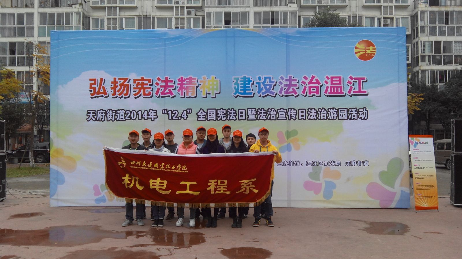 党的十八届四中全会将每年12月4日定为国家宪法日。为在全社会普遍开展宪法教育,12月4日上午,机电工程系志愿者来到天府街道,协助开展“弘扬宪法精神,建设法治温江” 12.4法制宣传日活动。 在活动现场,志愿者...