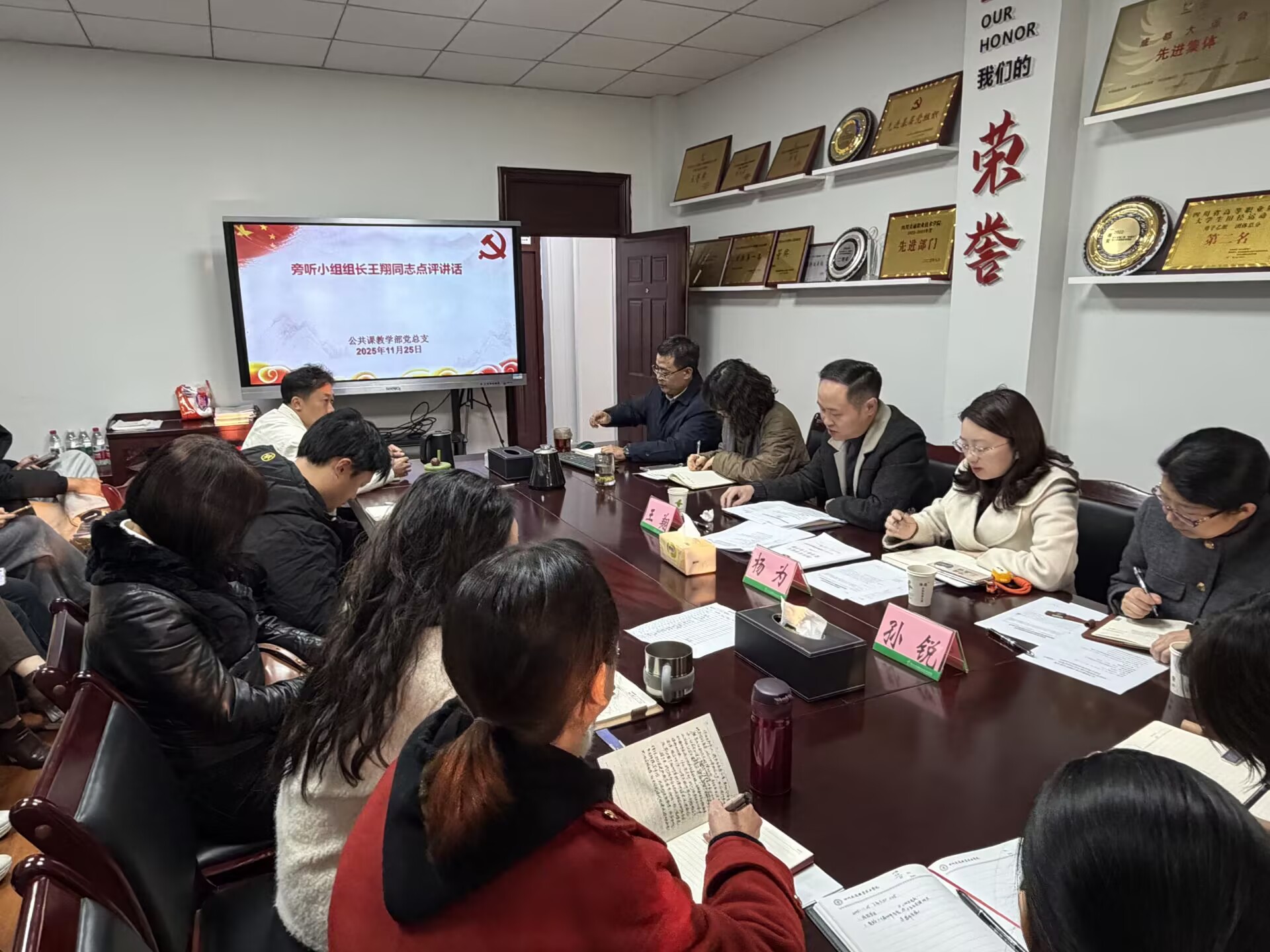 11月25日下午,公共课教学部党总支组织召开政治理论学习会,专题学习党的二十届四中全会精神。部门全体教职工参加学习,学院列席旁听小组到场督导。会议由党总支书记主持并领学。会议系统阐述了党的二十届四中全...