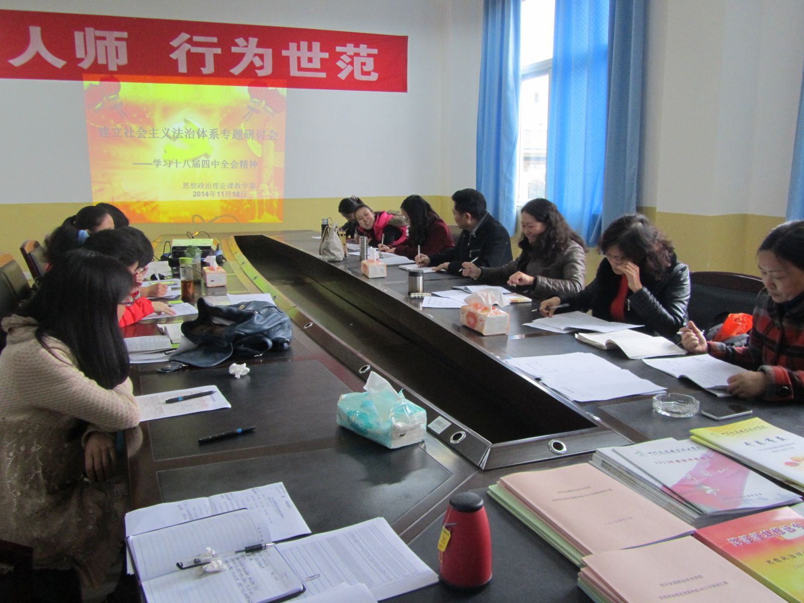 为深入学习贯彻党的十八届四中全会精神,11月18日下午,思政部以“建立社会主义法治体系——学习十八届四中全会精神”为主题召开研讨会。思政部全体党员参加会议。学院党委副书记、纪委书记孙永辉参加本次会议。 ...