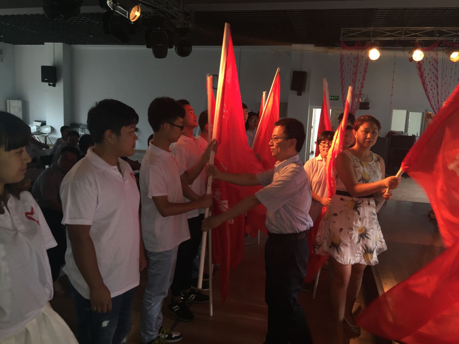 7月3日下午,学院2015年暑期“三下乡”社会实践活动重点团队授旗仪式在学生活动中心举行,学院团委负责人、各系团总支书记及各实践团队学生代表100余人参加了授旗仪式。 我院2015年暑期“三下乡”社会实践活动以...