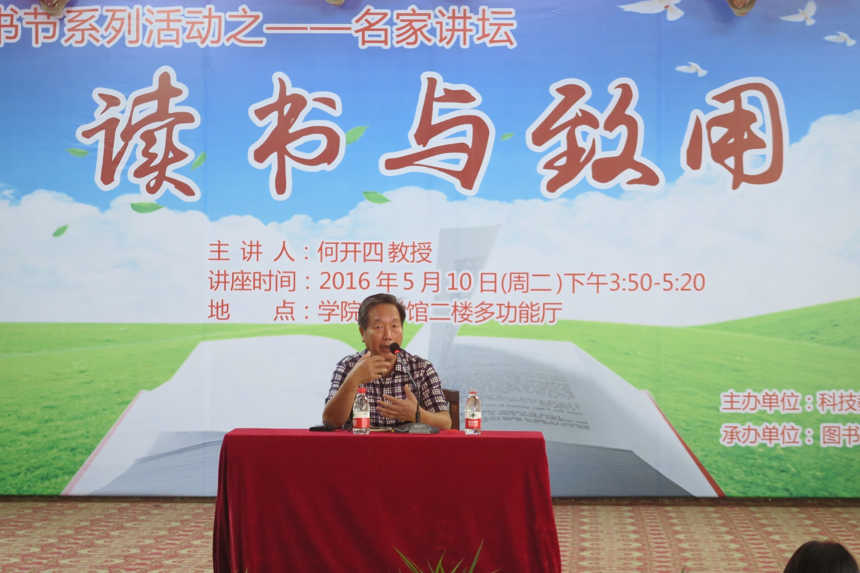 5月10日,在我院第三届读书节开展期间,四川省作家协会名誉副主席、鲁迅文学奖评委、茅盾文学奖评委何开四教授应邀做客第三十二期名家讲坛,就“读书与致用”与师生分享了人生经历、畅谈了读书与学习的心得,告诫...