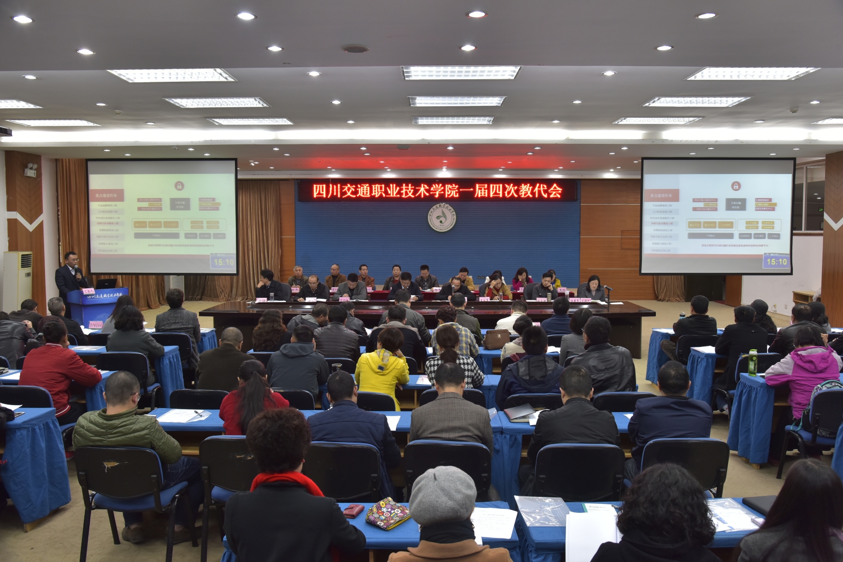 11月11日下午,学院举行一届四次教代会,会议主要议题是审议通过《学院“十三五”建设发展规划》。104名教代会代表、16名列席代表参加了会议。 代表们在11月8日至11月10日分组审议了《学院“十三五”建设发展规...