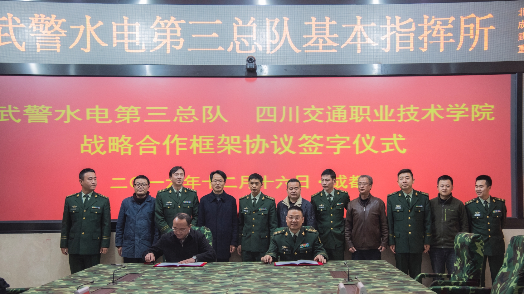 2016年12月16日下午,我院与武警水电第三总队战略合作框架协议签约仪式在武警水电第三总队隆重进行。学院院长蒋永林、副院长彭谦出席仪式,院长蒋永林代表学院在协议上签字。 双方将在人才培养与基地建设、...