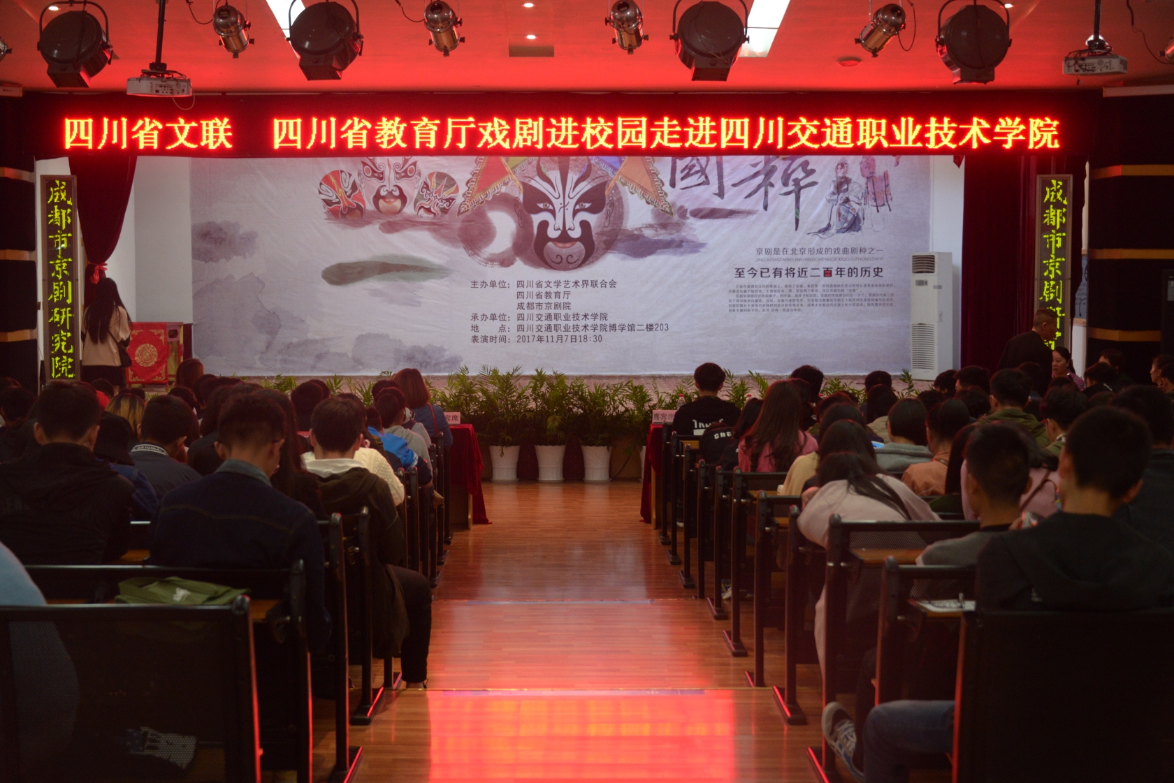 11月7日晚,由四川省文学艺术界联合会、四川省教育厅、成都市京剧院主办的戏剧进校园活动在我院博学馆203举行。 成都市京剧院的优秀青年演员为全院师生表演了《拾玉镯》、《智斗》、《武松打店》、《霸王别姬》...