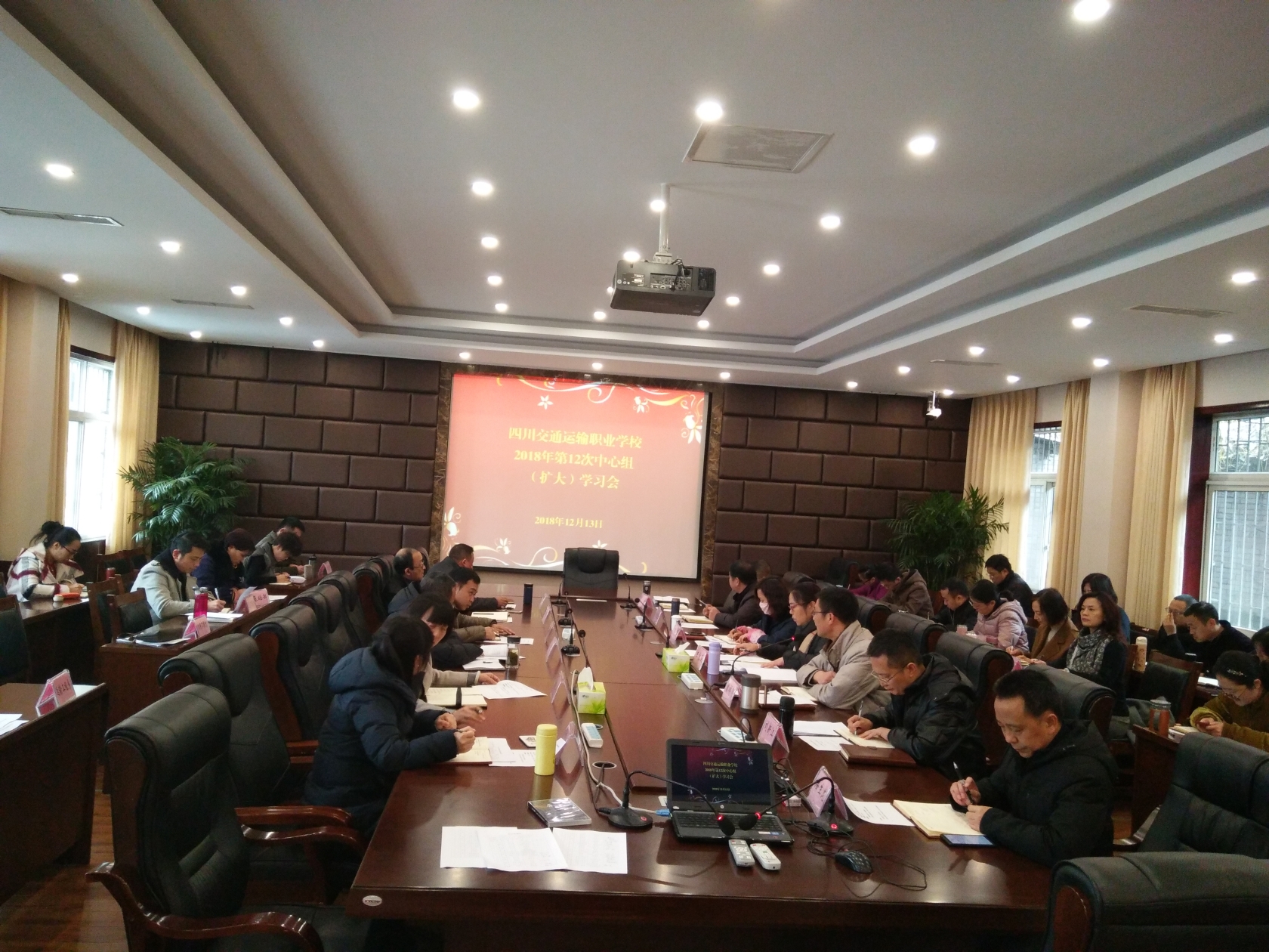 12月13日,交职校在温江校区综合楼1楼会议室召开2018年第12次中心组(扩大)学习会,党委书记曾祥亮主持,学校党委委员、校区副主任、全体中层干部参会。 会议组织观看了警示教育片《荣辱两重天》,该片深刻剖...