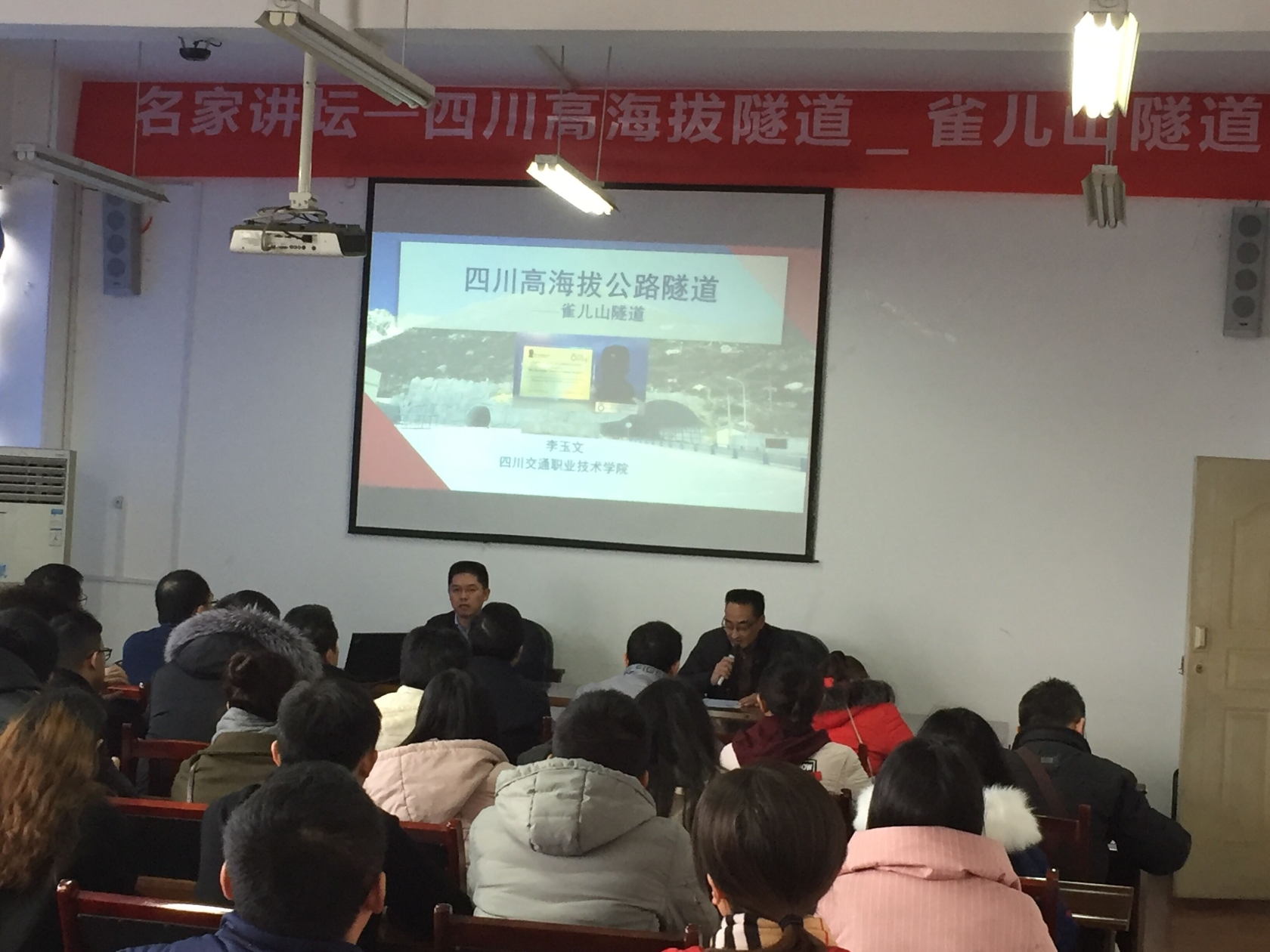 12月7日,学院第六十一期名家讲坛在学院笃行楼402会议室举行,学院副院长李玉文受邀为我院师生作题为《四川高海拔隧道——雀儿山隧道》的讲座,道路与桥梁工程系100余名师生到场聆听。 李玉文从方案研究、隧道施...