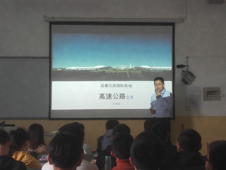 5月6日,在2408教室,学院副院长李玉文为道桥系土木专业2016级1班举办专题讲座,讲解成都天府国际机场高速公路立交相关知识。 李玉文抓住立交在路桥建设中的特殊地位,围绕为什么建天府国际机场、机场高速公路将...