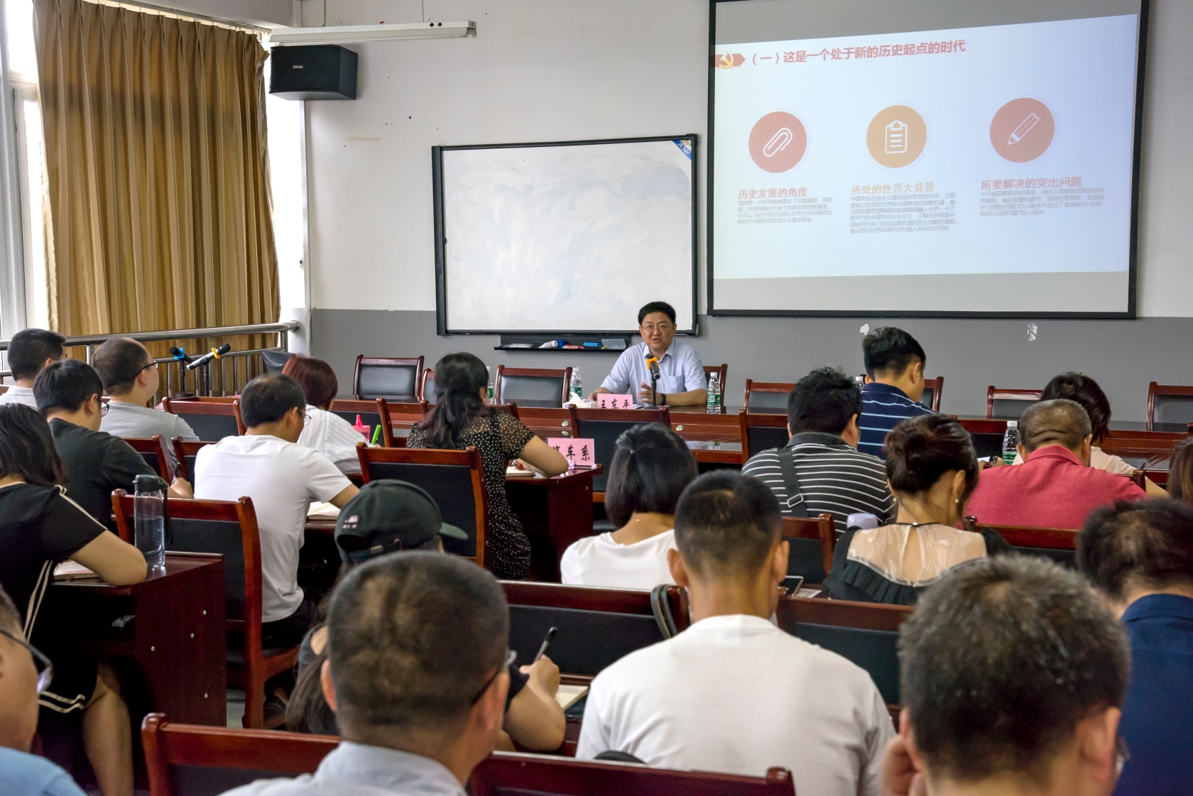 7月10日,四川交职院党委书记王东平在汽车工程系会议室,为宣传统战部、汽车工程系的全体党员、入党积极分子讲授题为“新时代、新任务、新征程”的专题党课。 王东平的讲授从进入新时代、认清新任务、走好新征程...