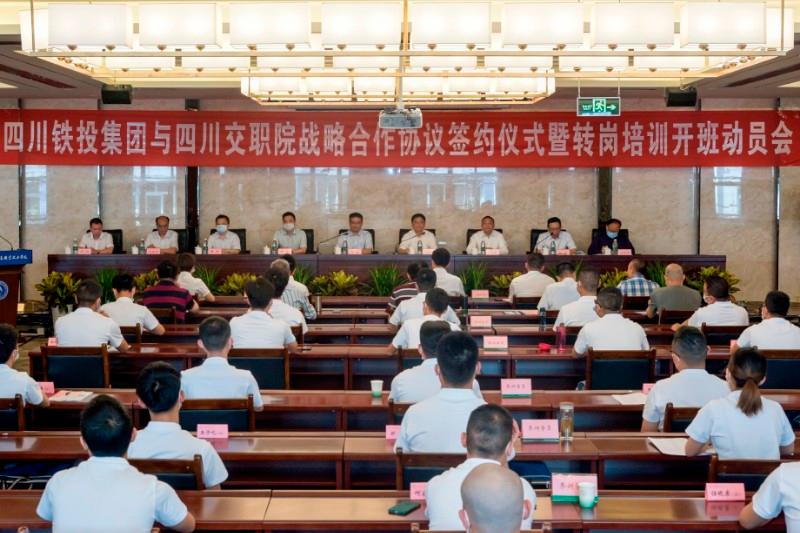 5月29日,四川省铁路产业投资集团有限责任公司与四川交职院战略合作签约仪式暨转岗培训开班动员会在四川交职院举行,铁投集团公司党委委员、董事方跃,学院院长蒋永林分别代表校企双方在战略合作框架协议书上签字...
