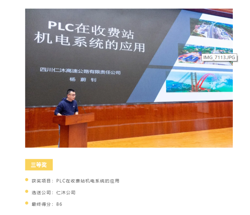 10月29日,四川高速公路建设开发集团有限公司“川高系统第二届青年创新创效大赛“评审会在成都召开。四川交职院信息工程系(川高)数据信息专业2019级1班学员杨蔚钊的“PLC在收费站机电系统的应用”项目,获得技...