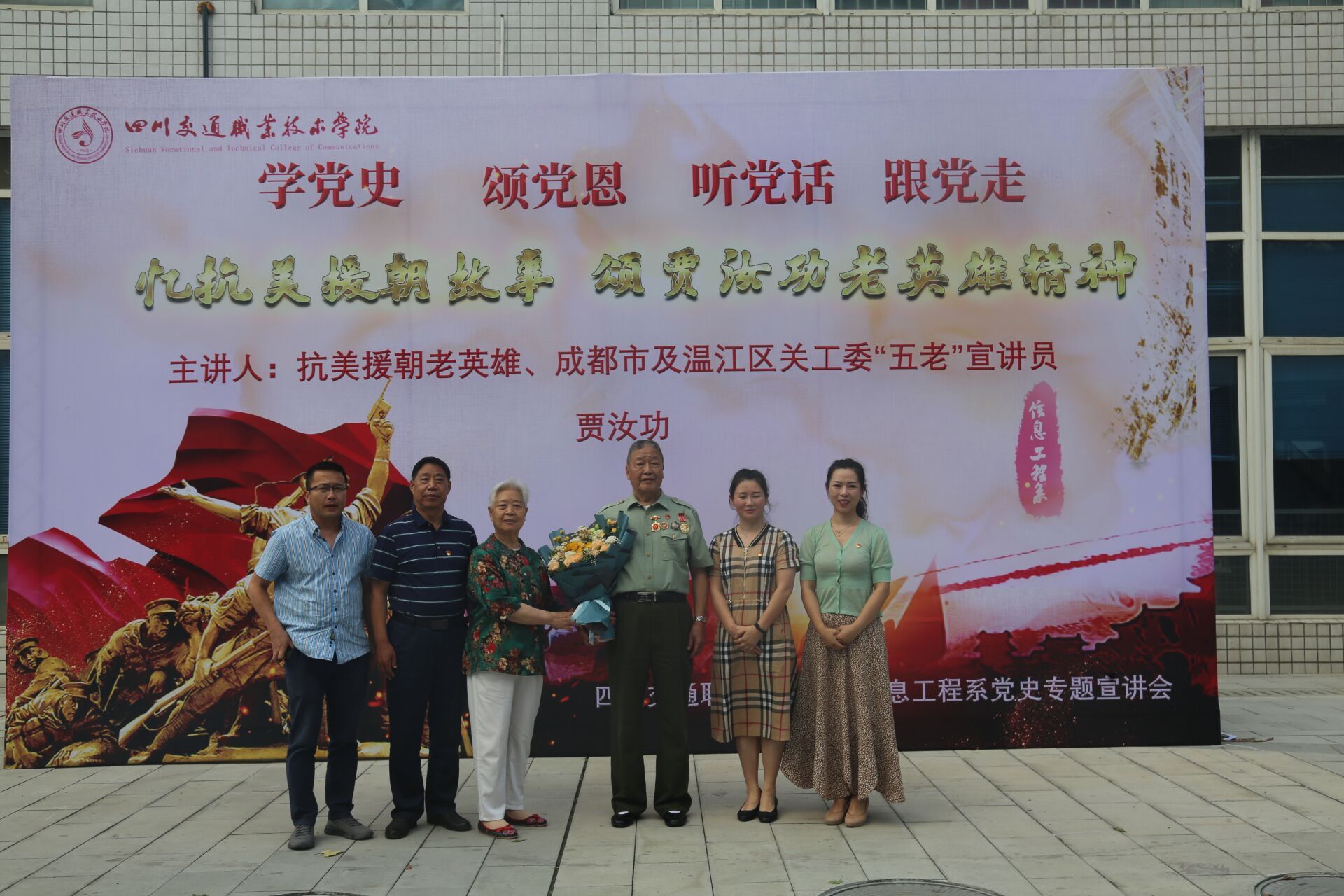 6月15日,交职院信息工程系党史学习教育宣讲会在学院明德楼B319会议室举行。宣讲会邀请到抗美援朝老英雄、成都市关工委及温江区关工委“五老”宣讲员贾汝功为全系师生做党史宣讲报告。贾汝功今年85岁,14岁入伍,...