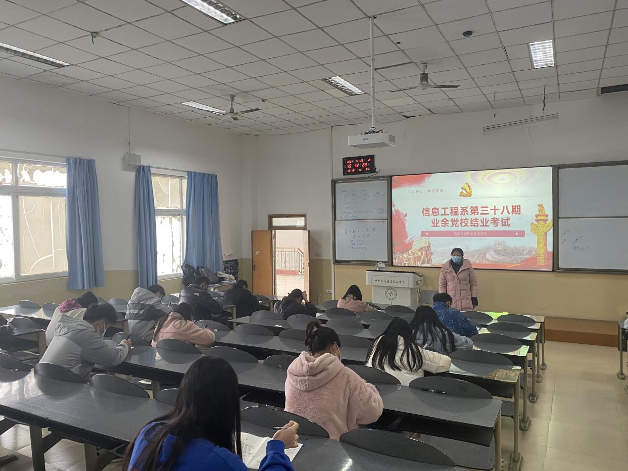 按照中共四川交通职业技术学院委员会业余党校信息工程系分校计划安排,我系88名入党积极分子在经过历时40天的学习后,于11月22日下午在励学楼2321、2323教室进行了结业考试。此次考试由系学生党支部组织考核,为...