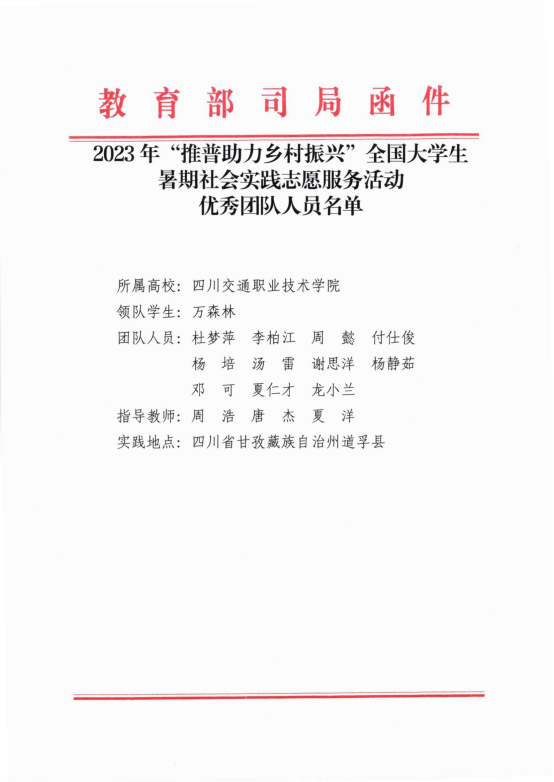 此次教育部、团中央的表扬信,充分肯定了学院扎实推进实践育人工作的成果,肯定了交院学子乐于奉献、服务乡村的优良品质。