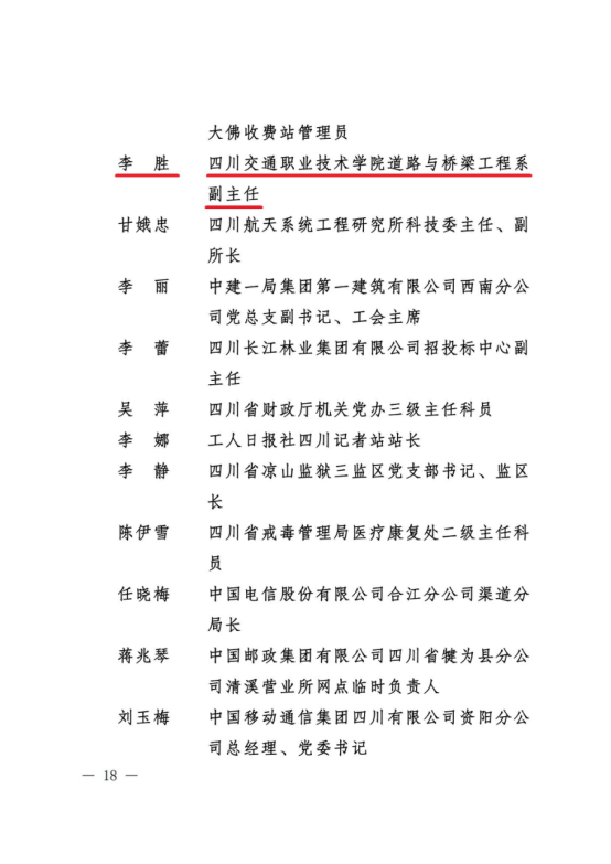 在国际劳动妇女节到来之际,学院教师李胜凭借优异的表现和价值追求,荣获“四川省五一巾帼标兵”荣誉称号。