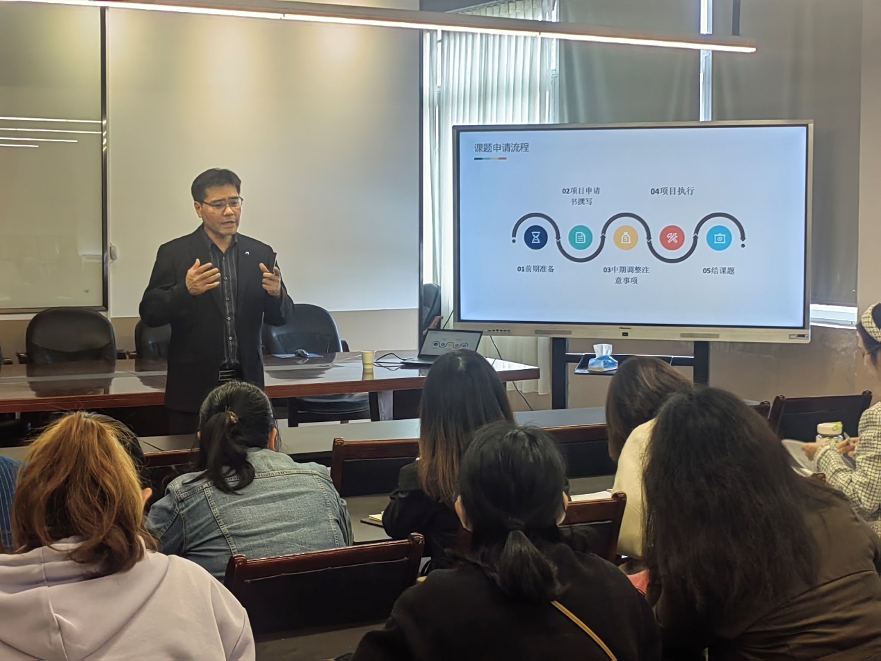 4月5日,艺术与设计系特邀中国非物质文化研究院研究员、四川省社科重点基地李白文化研究中心研究员、四川省社科重点基地四川民间文化研究中心研究员、绵阳师范学院罗毅教授为全体教师以“高校教师职业发展之课题申报与论文撰写”为题进行了2个小时的精彩讲座。