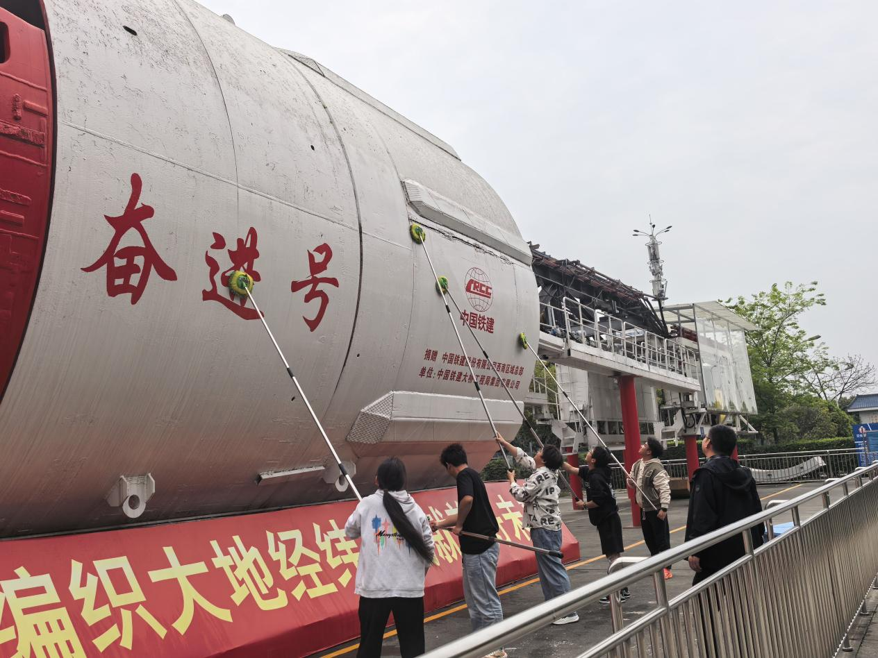 为深入贯彻落实习近平总书记关于劳动教育的重要论述,充分发挥基层党组织战斗堡垒作用和党员先锋模范作用。近日,机电系党总支组织师生党员志愿者,带领智装社团、拓道者车队骨干成员,利用课间及午休时间对校内“奋进号”盾构机开展深度清洁维护,以“党建红”引领“劳动美”,以“实践行”培育“工匠心”,落实党建+劳动育人的生动实践。